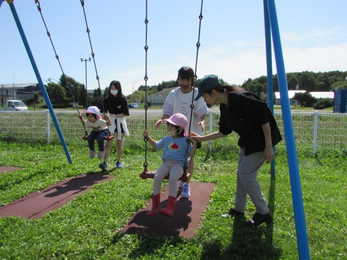 うめさんはさっそくブランコを押してもらっていました。
