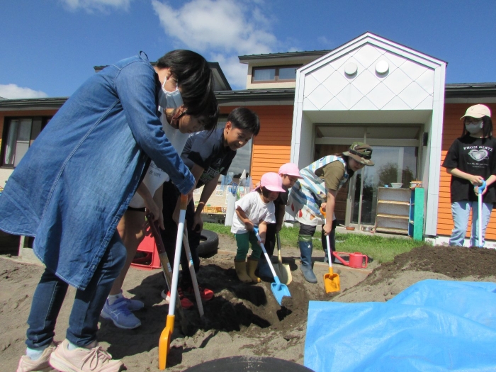 剣先スコップだと深く掘れるね