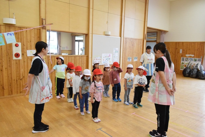 朝の片付けが終わってからお遊戯『ポポポポポーズ』と『ハトポッポ体操』を踊りましたよ。
