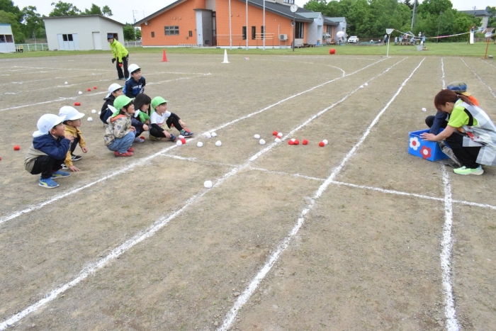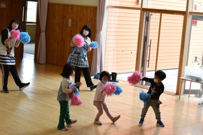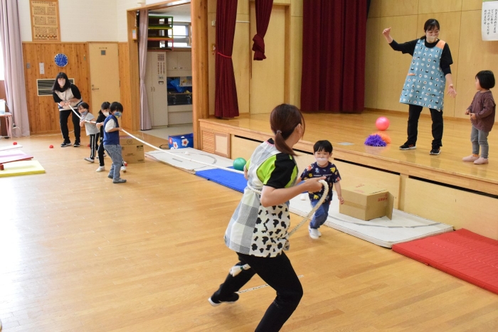 運動会では綱引きも復活!綱引き自体どんな競技なのかよくわからない子もいるのでまずは綱を引くという感覚を覚えるため少人数かでやってみましたよ。