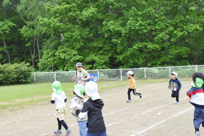 グランドではリレーをやりました。今日もさくらさんは一周100メートルを走ってみましたが、けっこうきつかったらしく走り終わったらハーハー言いながら倒れる寸前でした(>_<) うめさん、ももさんは直線往復リレー、ももさんになると距離が長くなるのでそこも見所です。