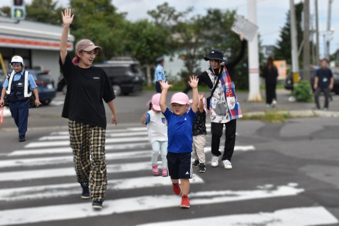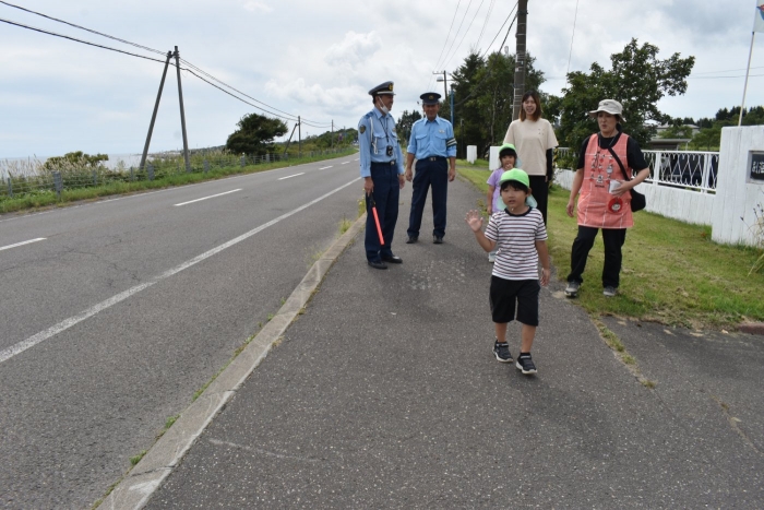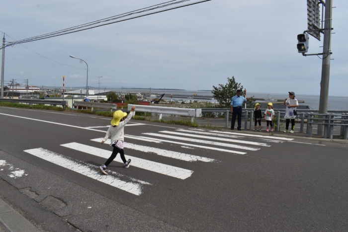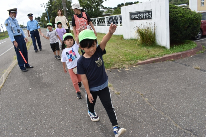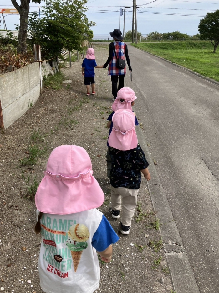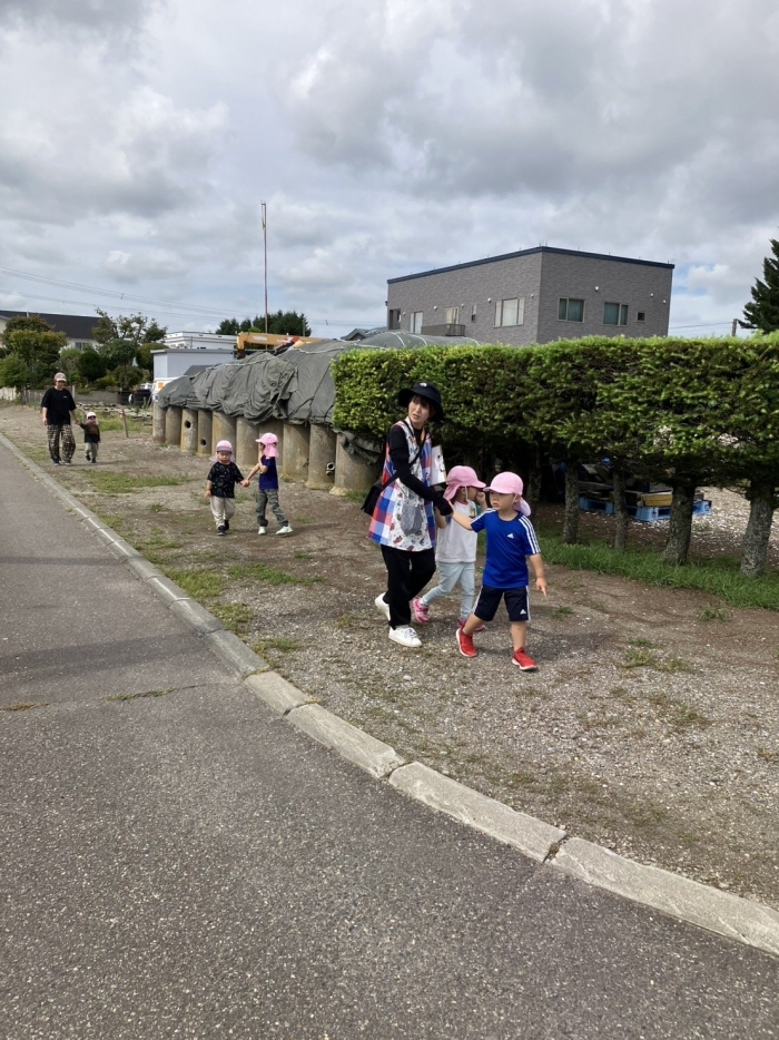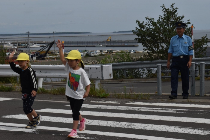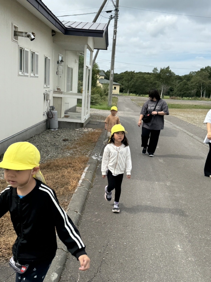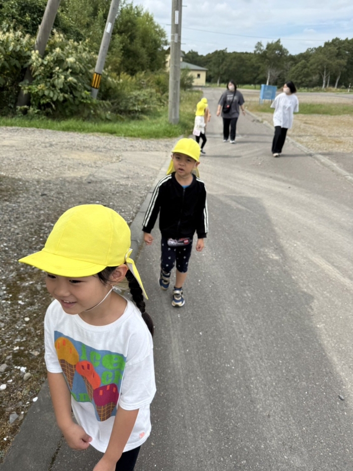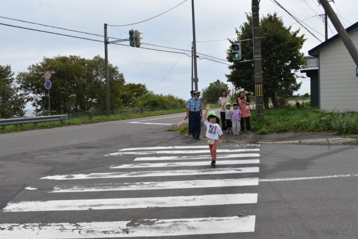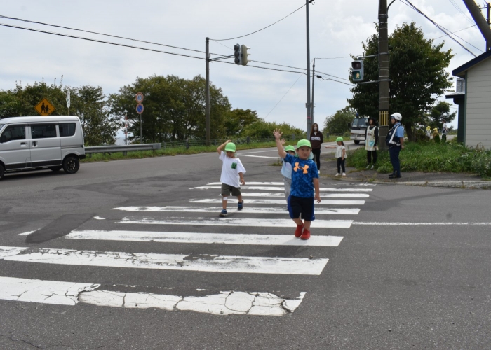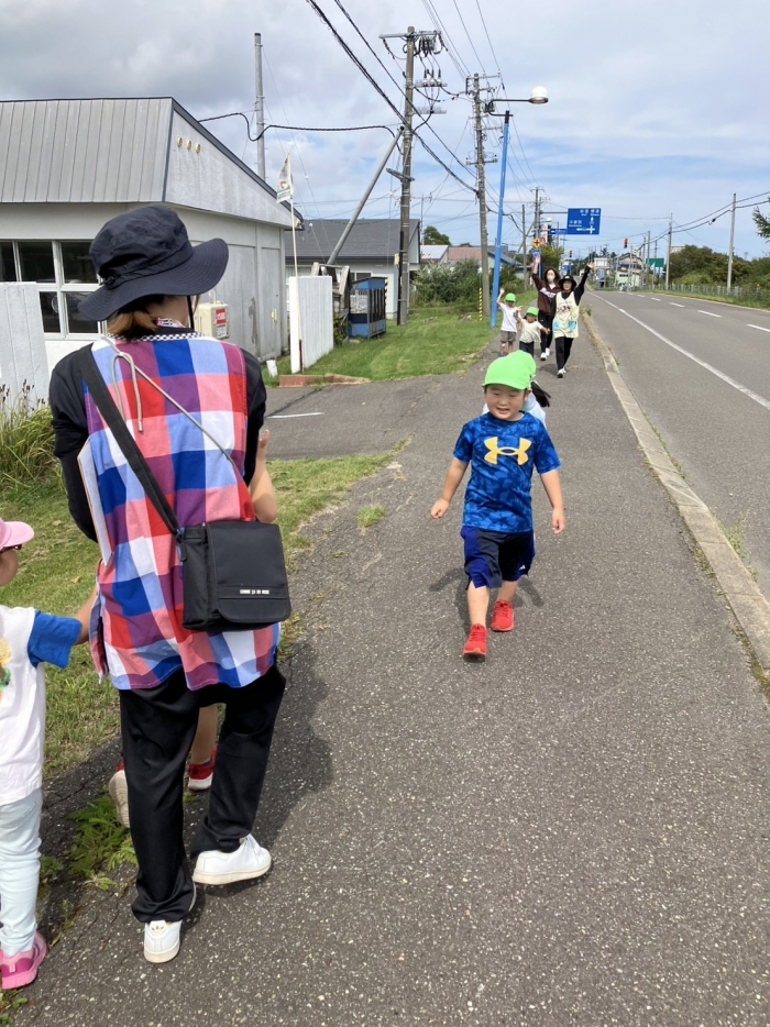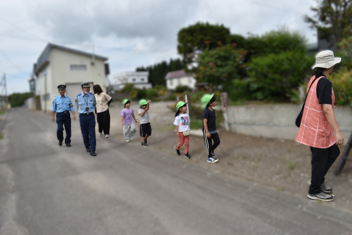 先生方は,子どもたちが道路を歩いているときの様子(道路の危険性を感じているか,信号の見方や横断の仕方を理解しているか,ちゃんと安全確認を自分の目でできているか,目線はちゃんと車を捉えているか)などの姿を,改めて確認することができました。今後も日常保育の中でも,交通安全について意識をしていけるように指導をしていきたいと思います。各ご家庭におかれましても,ちょっとした登降園時などを利用し,親子で歩く練習をしていただけますよう,どうろよろしくお願いいたします。