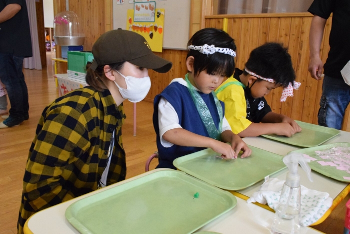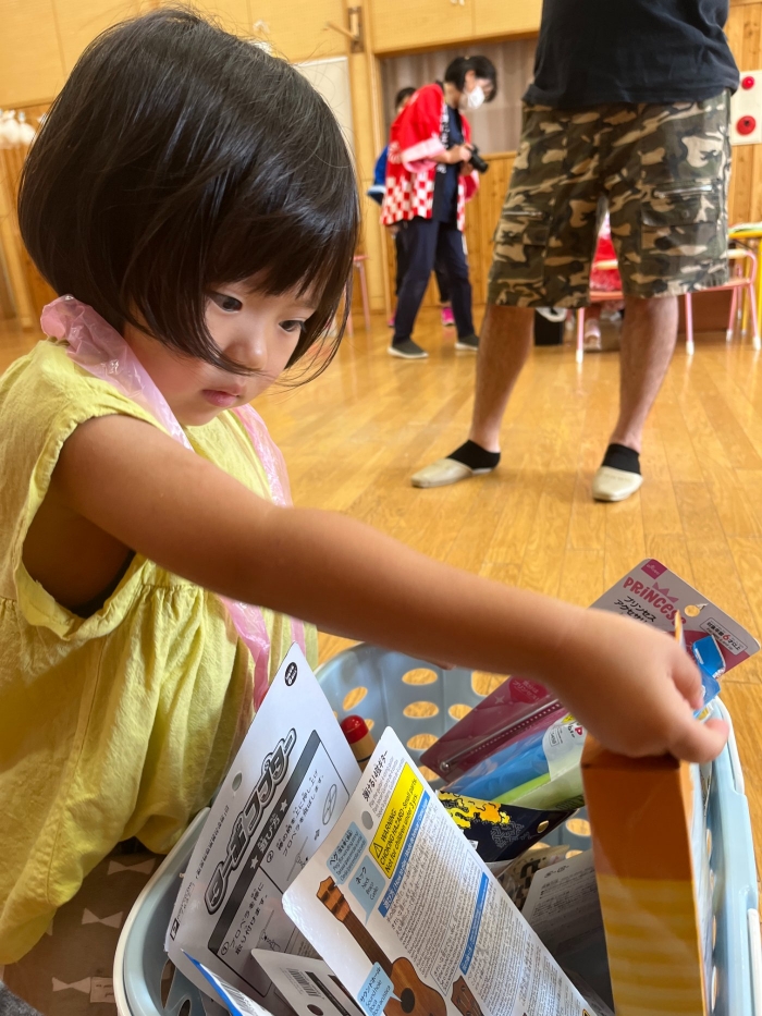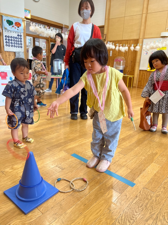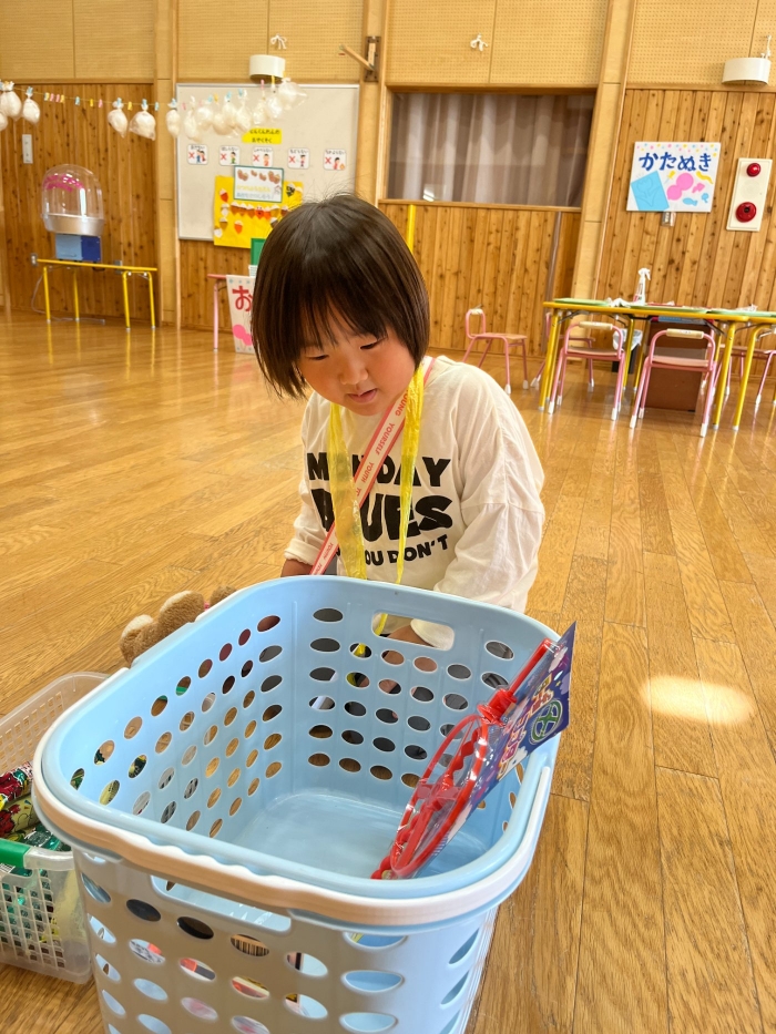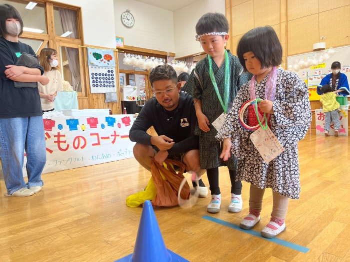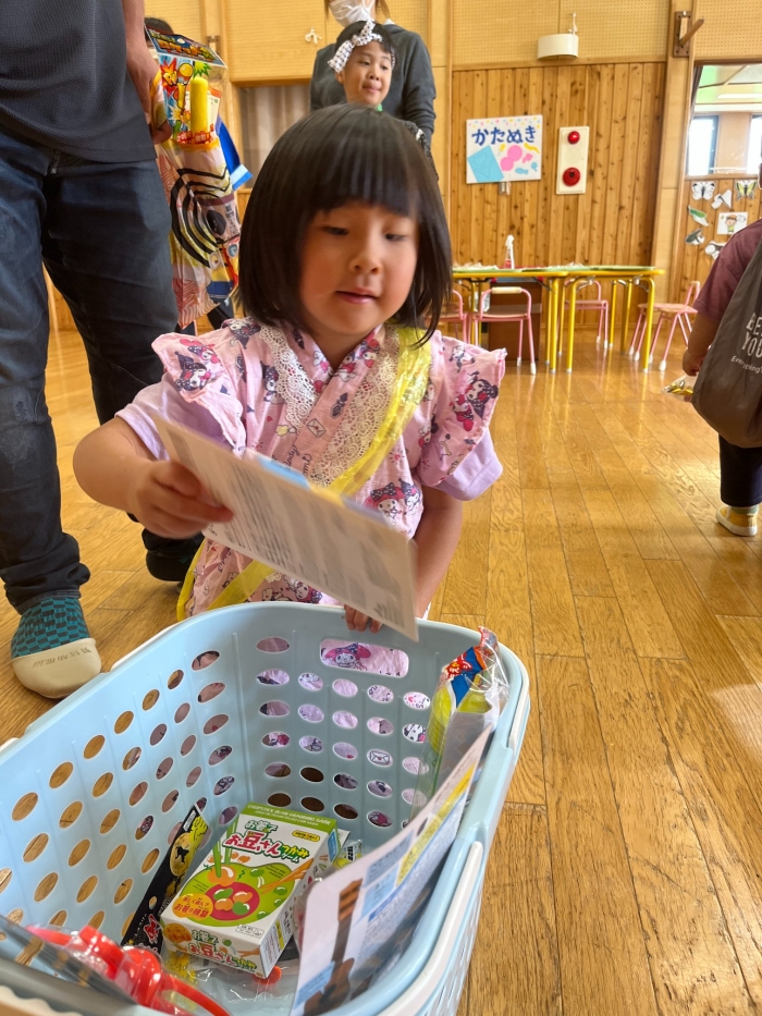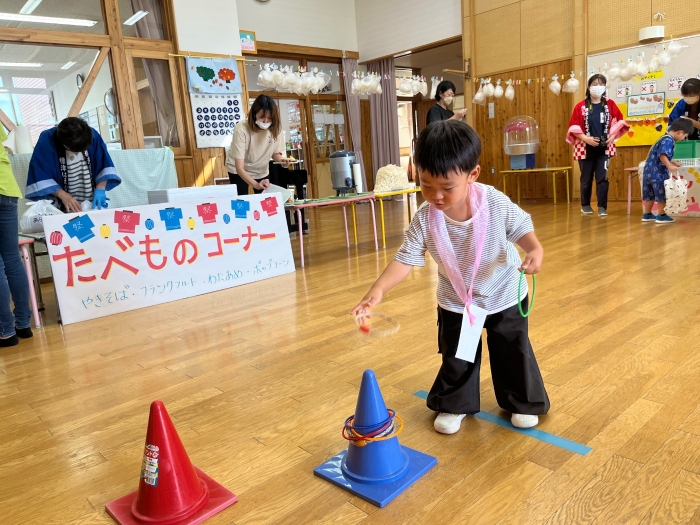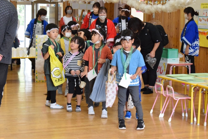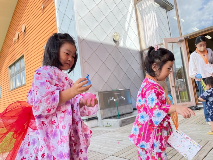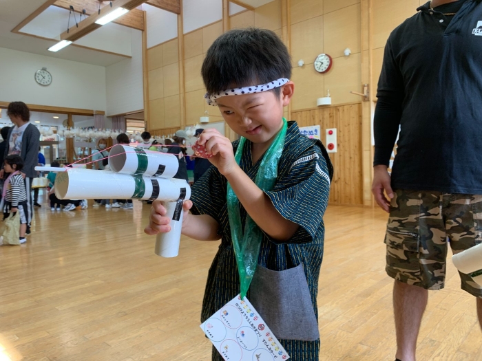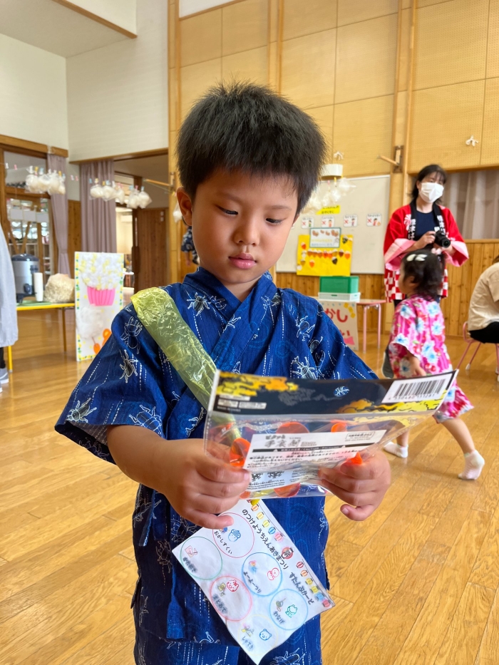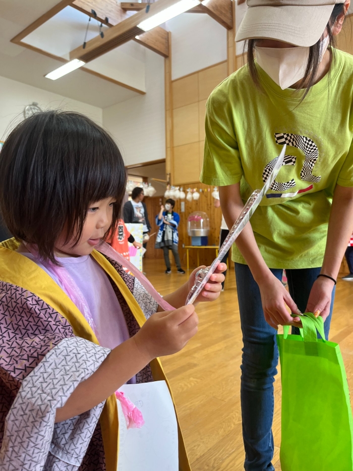 今回のお祭りでは野付アポロ石油さんより綿あめ機、標津のはまなす苑さんより半纏をお借りし、中学3年生の保育実習のときに作ってくれた遊び物を使わせていただいたりと、盛大に行うことができました。ご協力を頂いた皆様に感謝いたします。