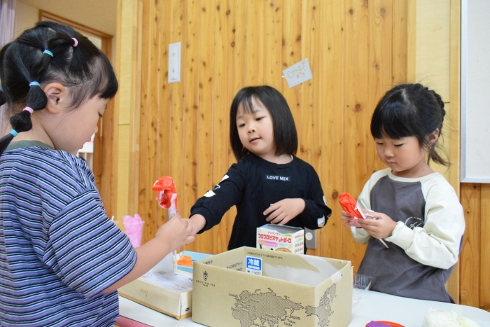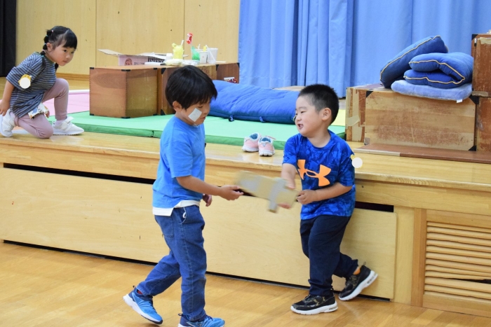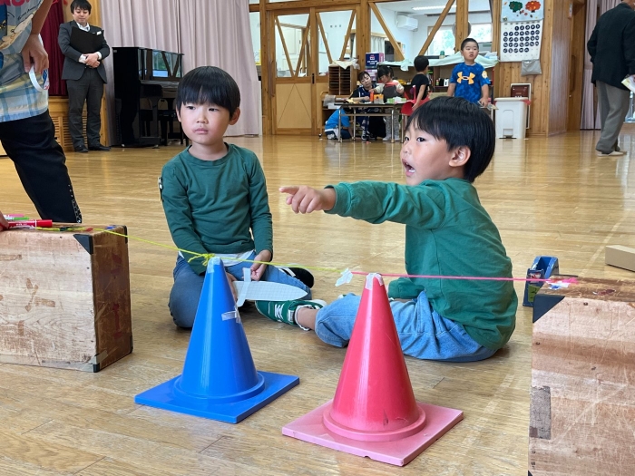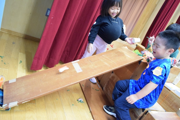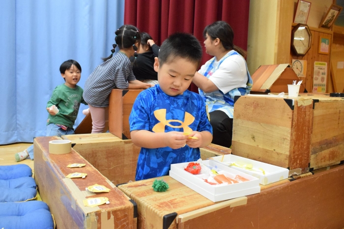 やりたい遊びにすぐに向かい、お店屋さんで買い物をしたり、流しソーメン遊びをしたり、サッカー対決をしたりして友達との関わりややり取りを楽しんでいました。