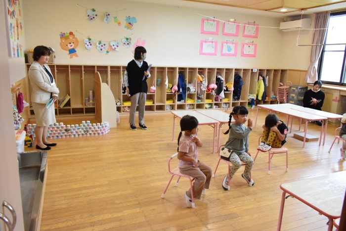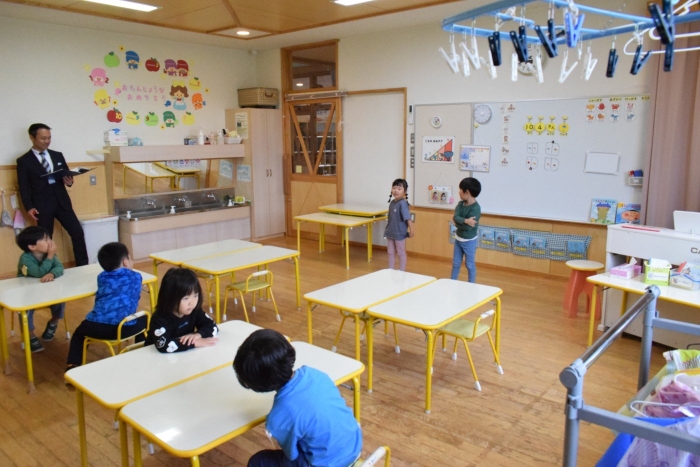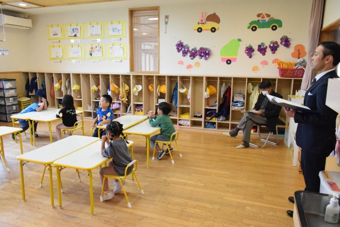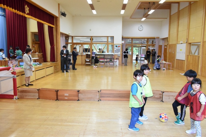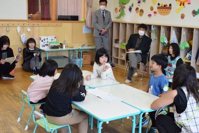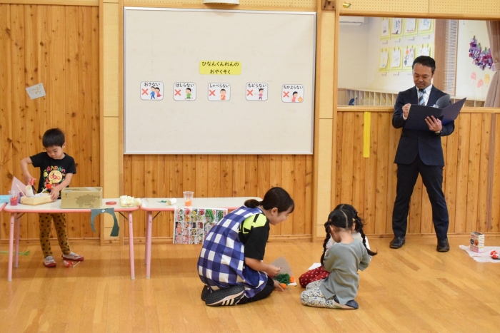 今日は根室教育局の指導主事や主査、教育委員会の指導参事、教育相談員、羅臼幼稚園、春松幼稚園、上西春別幼稚園、野付小学校、中学校の先生たちが幼稚園の保育を観に来てくださいました。