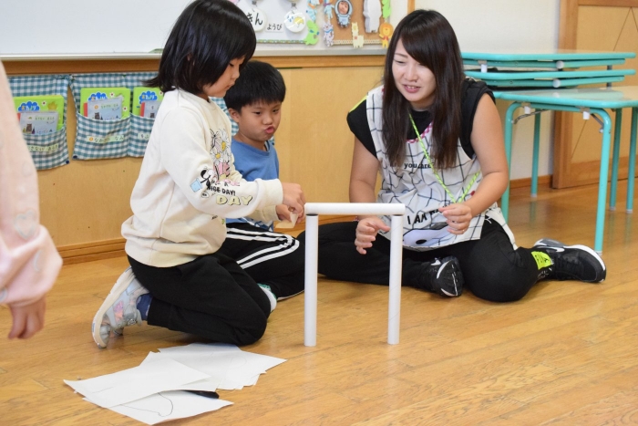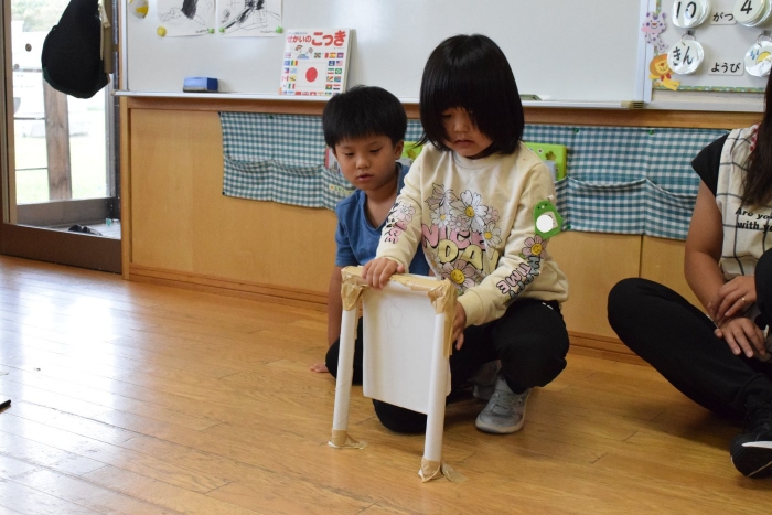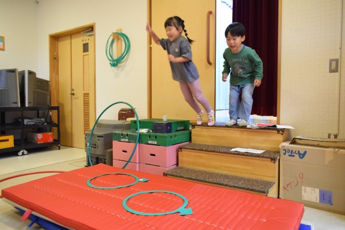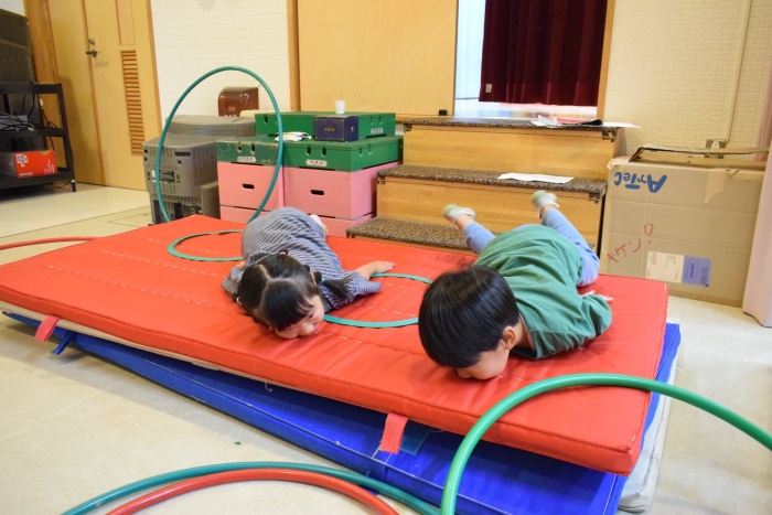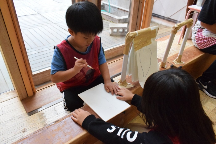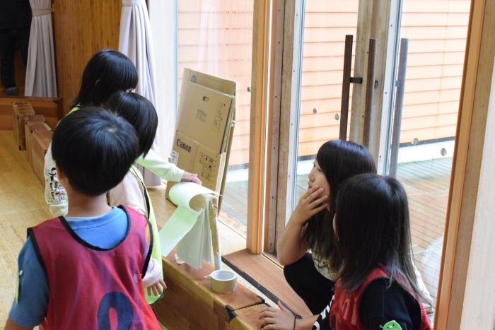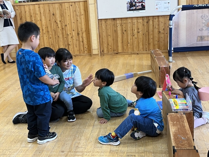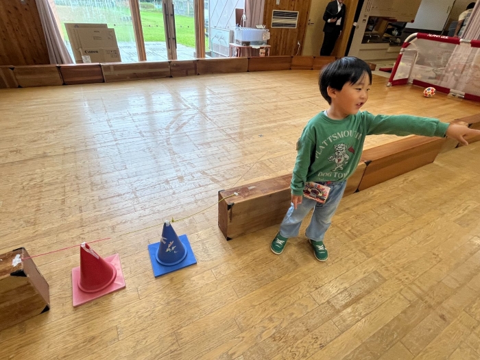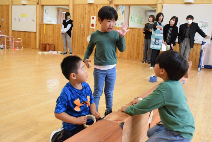 たくさんの先生たちが観ている中でも子ども達は昨日の遊びの続きや新たに生み出した遊びをのびのびと楽しむ姿がありました。午後からは話し合いの時間を設け、今日の保育を振り返りながら子ども達の育ちや援助の方法などについてたくさんの感想やアドバイスなどを頂くことができました。今日の研修で得た成果を今後の保育に還元していきたいと思います。