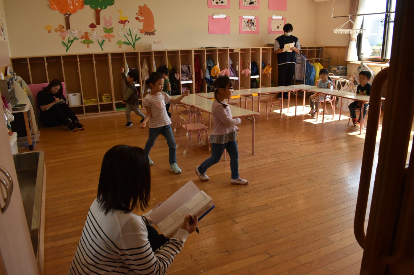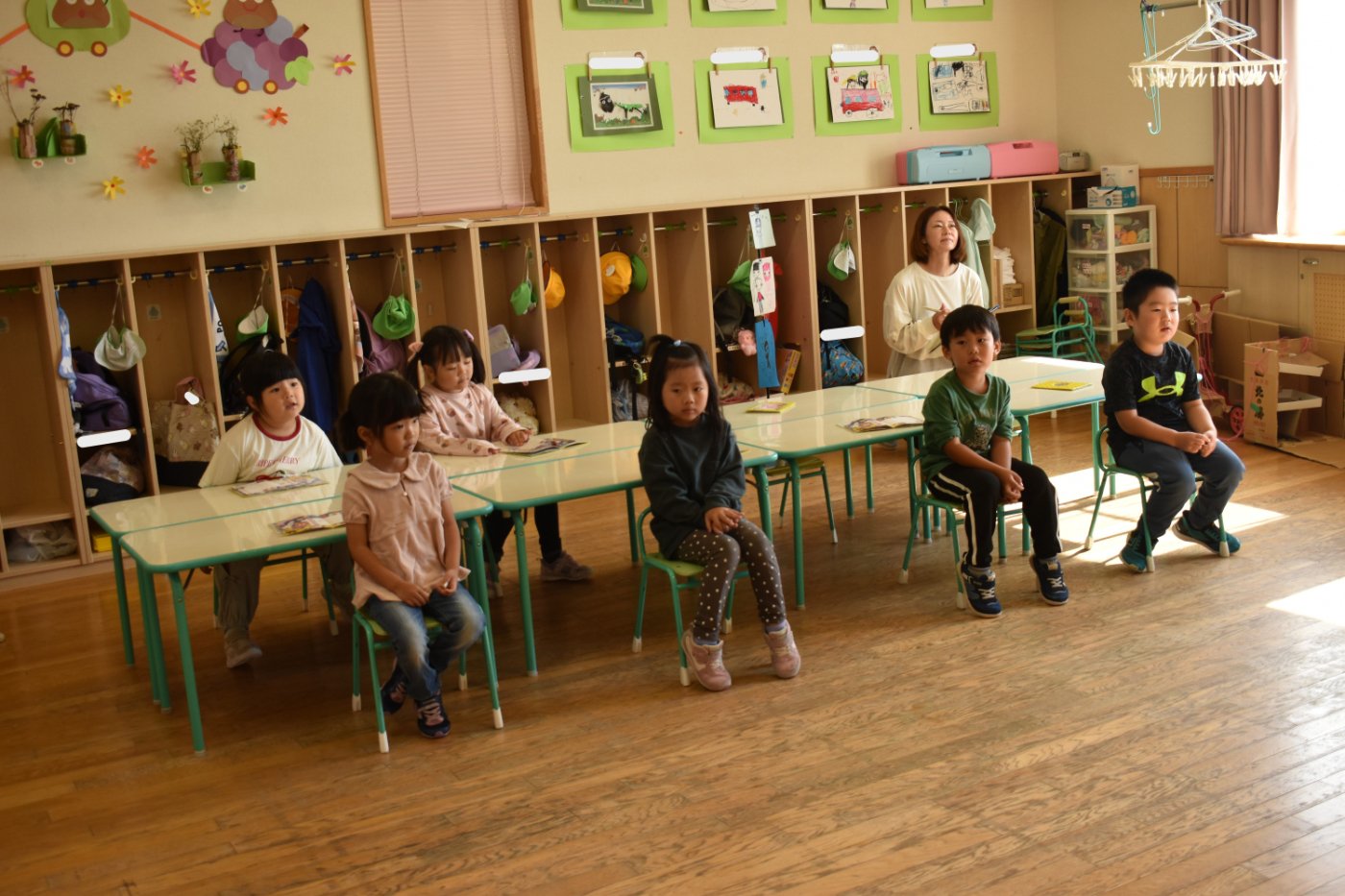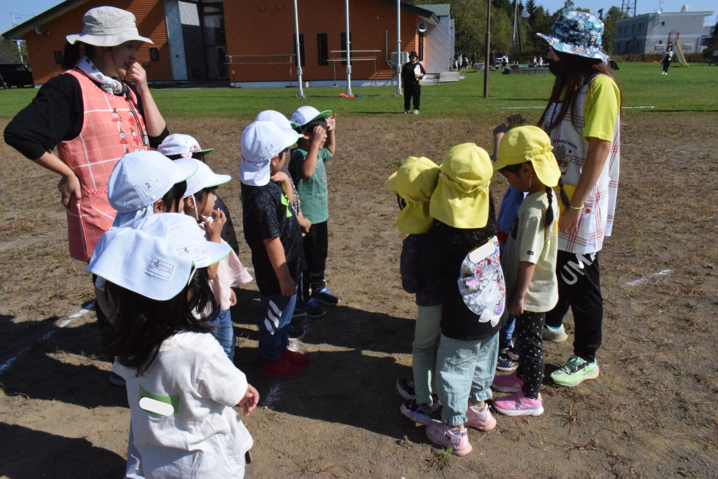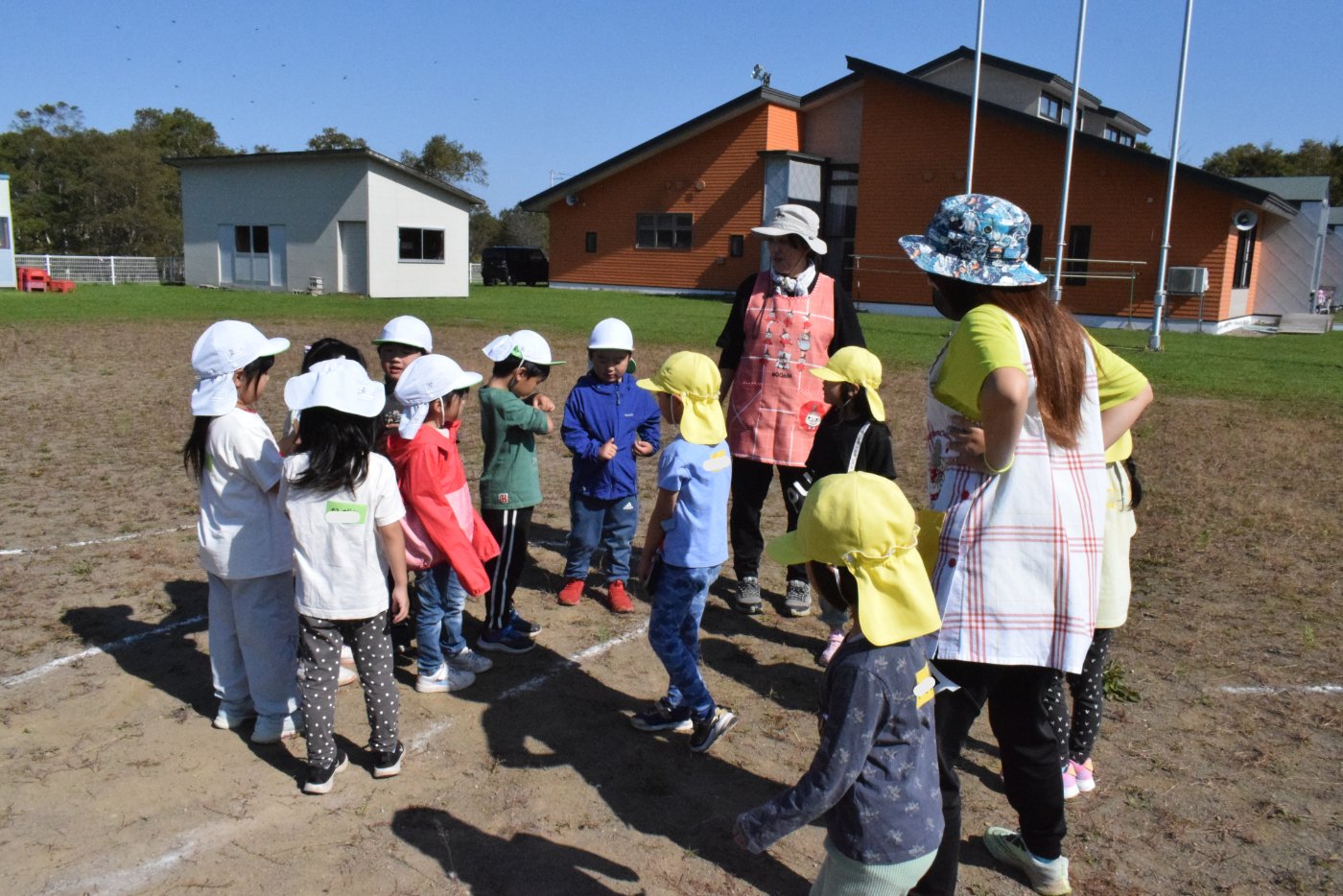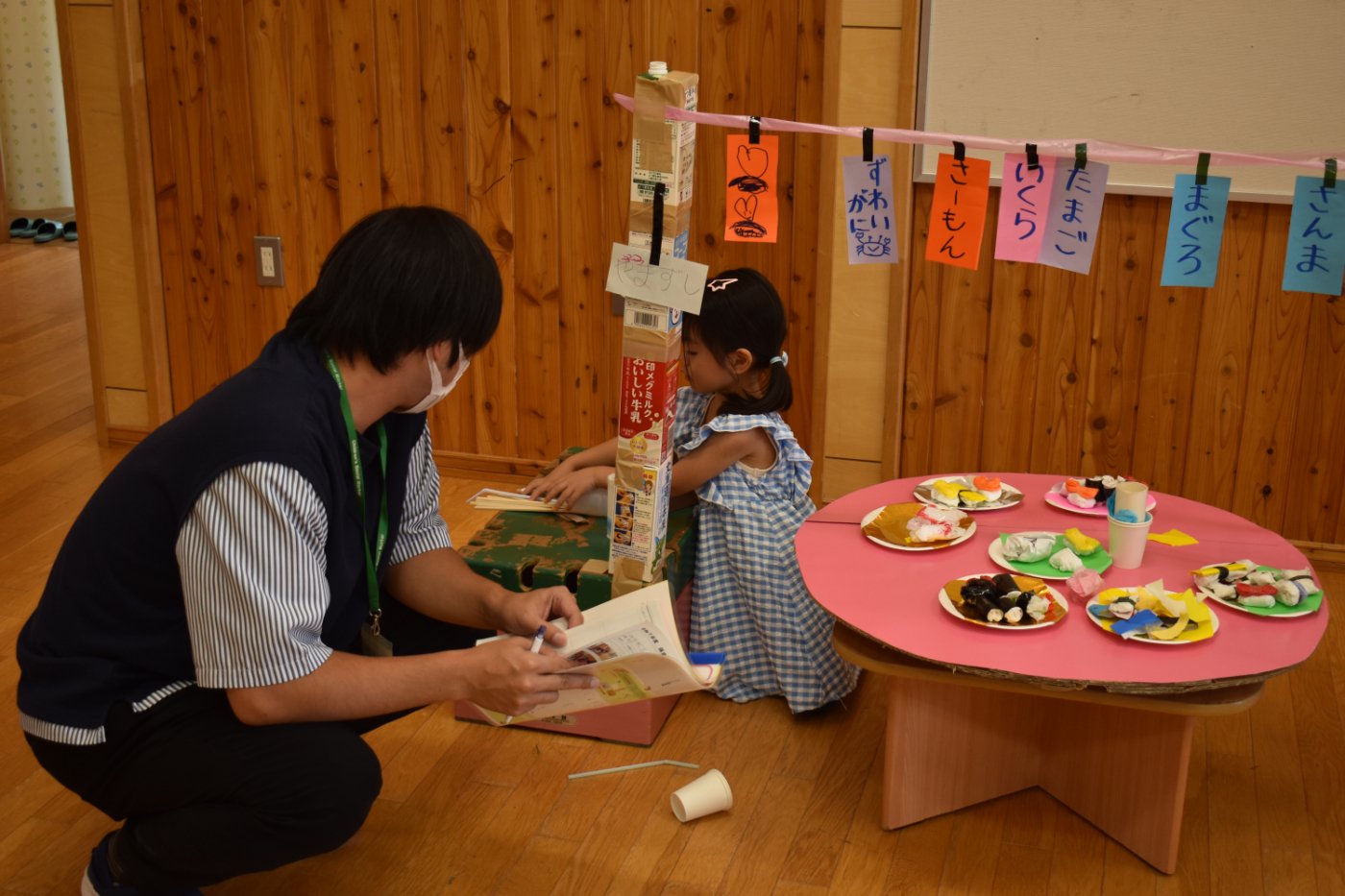 今日は学校教育指導訪問を行い,根室教育局支援課学校教育指導班主査の先生,別海町教育委員会指導参事の先生,北海道教育庁幼児教育推進センター幼児教育相談員の先生をはじめ,野付小中学校の先生,根室管内の幼稚園の先生方がいらっしゃいました。今日の保育を見ていただき,午後からは保育内容や子どもたちの姿,本園の研究の取り組みについて話し合いを行いました。たくさんの方に見守られ、緊張してしまうかと思いましたが,お客様にもお祭りの食べ物を手渡したり,話しかけたりなど,自分から関わっていくお友達もいたりなど,普段通りの保育をみていただけたのかなと思います。