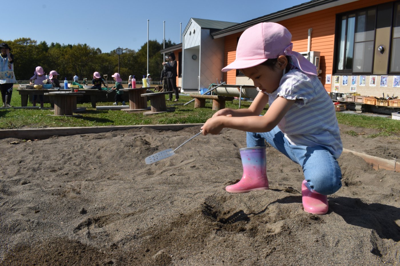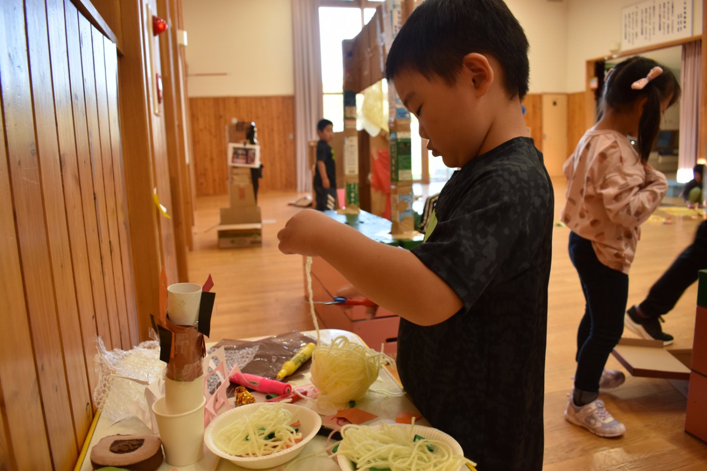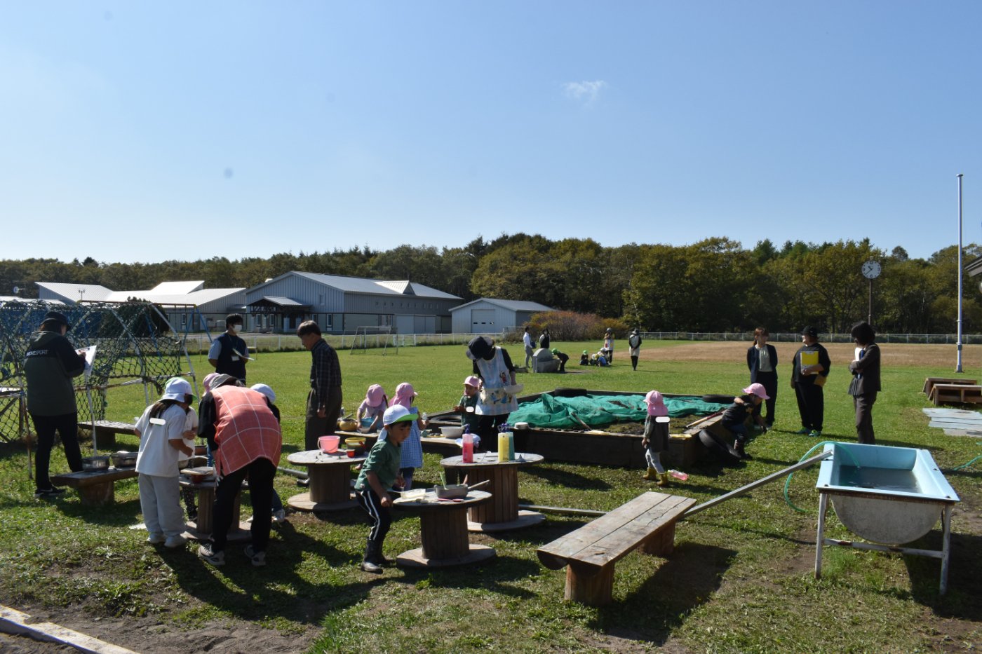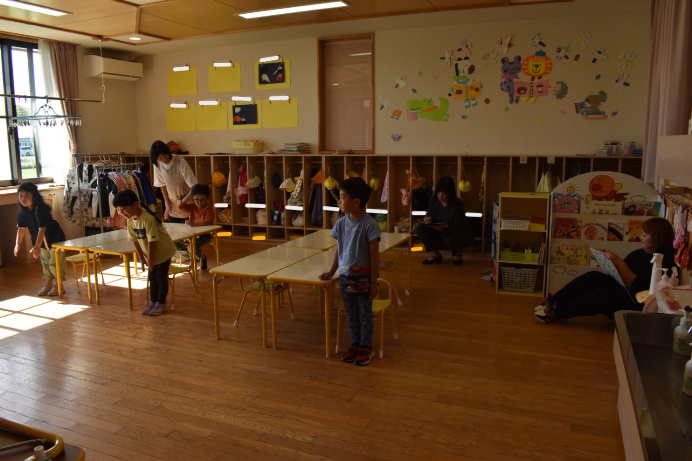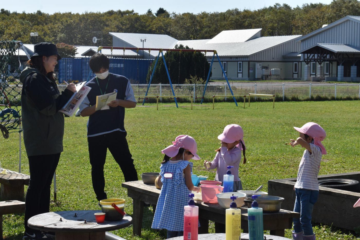 今日は学校教育指導訪問を行い,根室教育局支援課学校教育指導班主査の先生,別海町教育委員会指導参事の先生,北海道教育庁幼児教育推進センター幼児教育相談員の先生をはじめ,野付小中学校の先生,根室管内の幼稚園の先生方がいらっしゃいました。今日の保育を見ていただき,午後からは保育内容や子どもたちの姿,本園の研究の取り組みについて話し合いを行いました。たくさんの方に見守られ、緊張してしまうかと思いましたが,お客様にもお祭りの食べ物を手渡したり,話しかけたりなど,自分から関わっていくお友達もいたりなど,普段通りの保育をみていただけたのかなと思います。