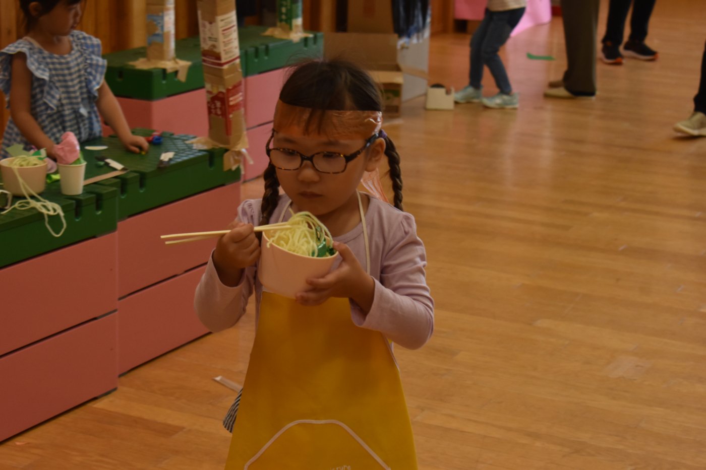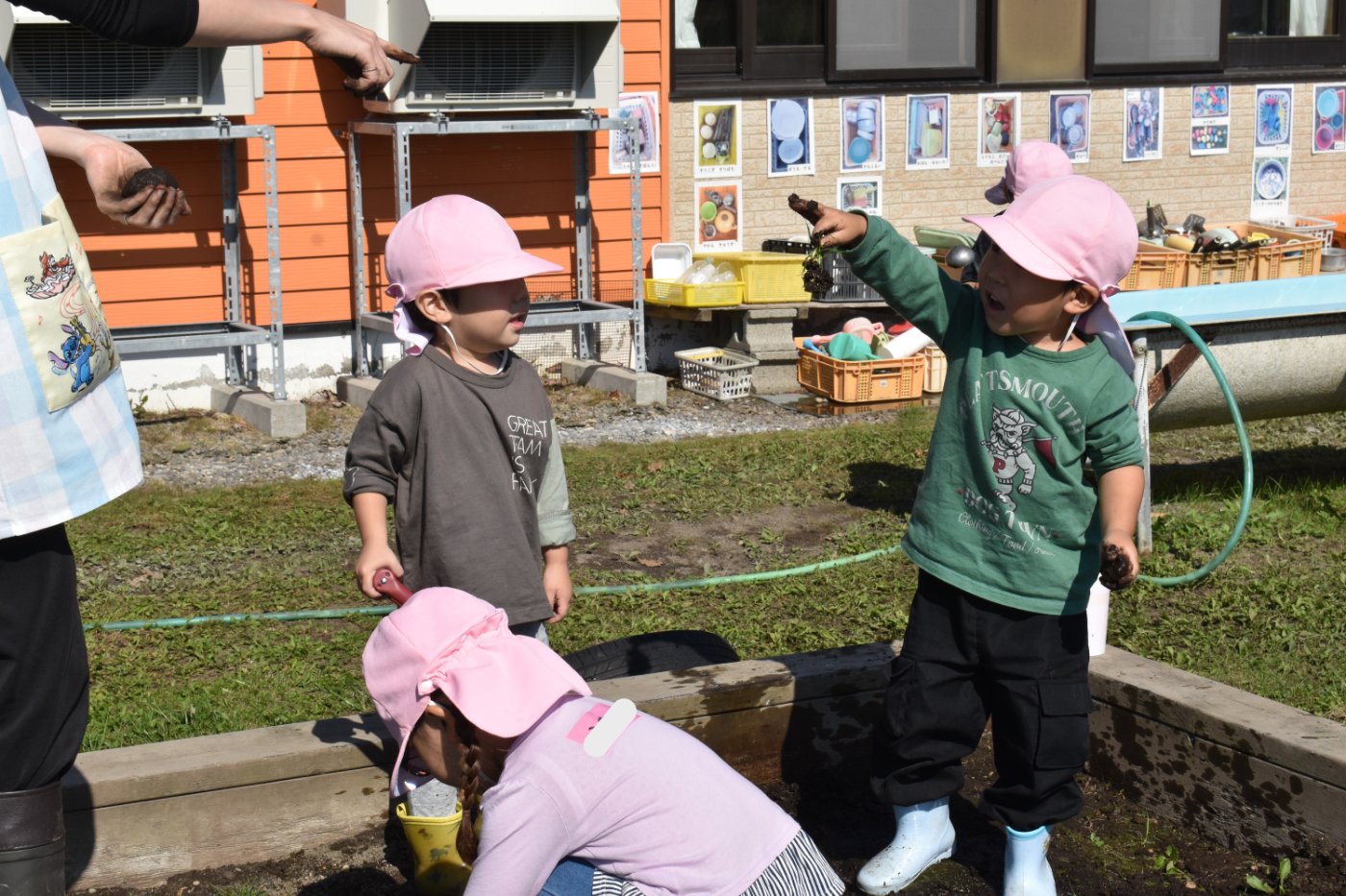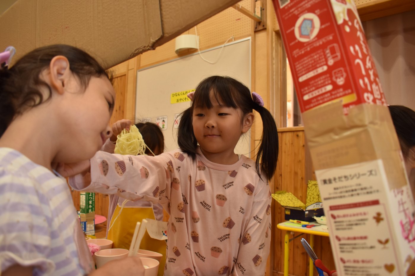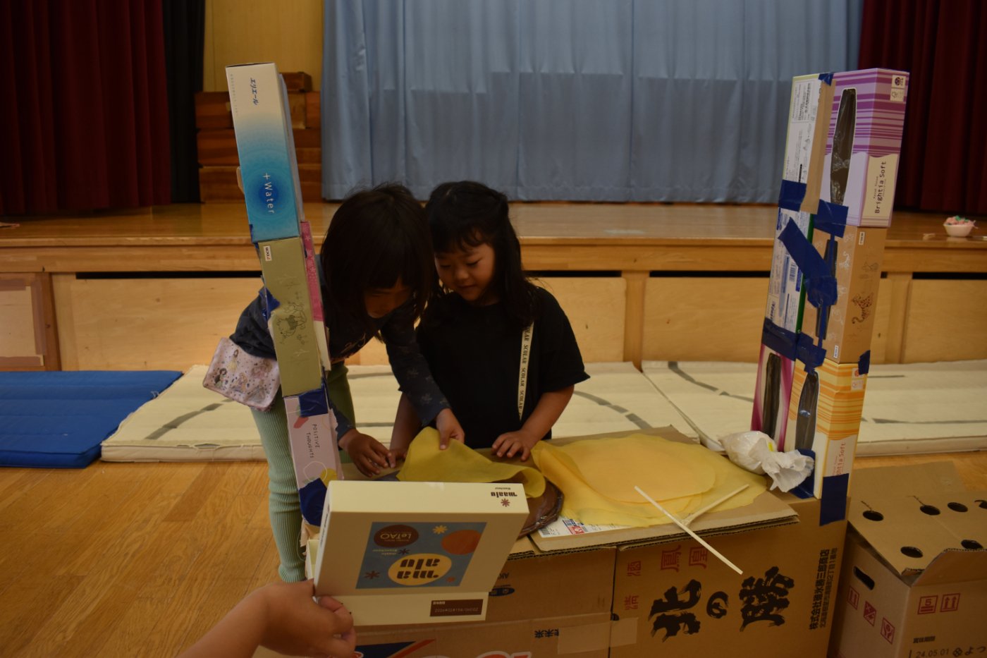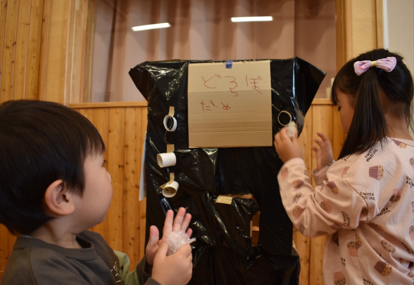 今日は学校教育指導訪問を行い,根室教育局支援課学校教育指導班主査の先生,別海町教育委員会指導参事の先生,北海道教育庁幼児教育推進センター幼児教育相談員の先生をはじめ,野付小中学校の先生,根室管内の幼稚園の先生方がいらっしゃいました。今日の保育を見ていただき,午後からは保育内容や子どもたちの姿,本園の研究の取り組みについて話し合いを行いました。たくさんの方に見守られ、緊張してしまうかと思いましたが,お客様にもお祭りの食べ物を手渡したり,話しかけたりなど,自分から関わっていくお友達もいたりなど,普段通りの保育をみていただけたのかなと思います。