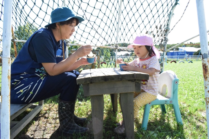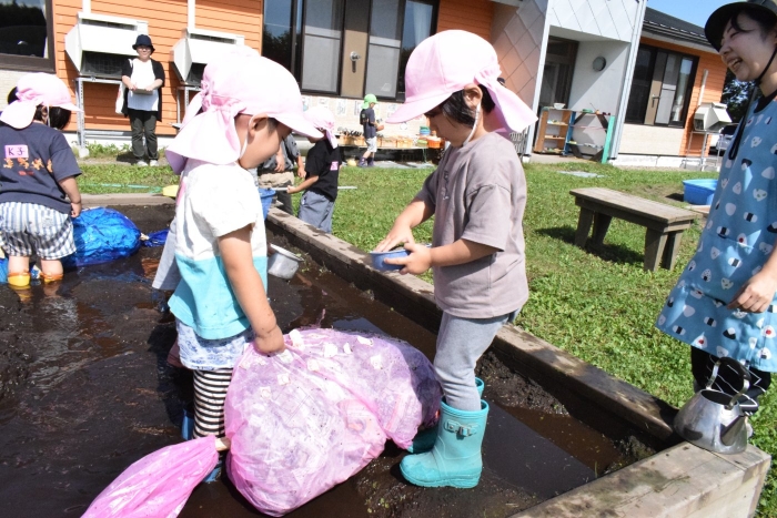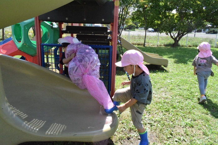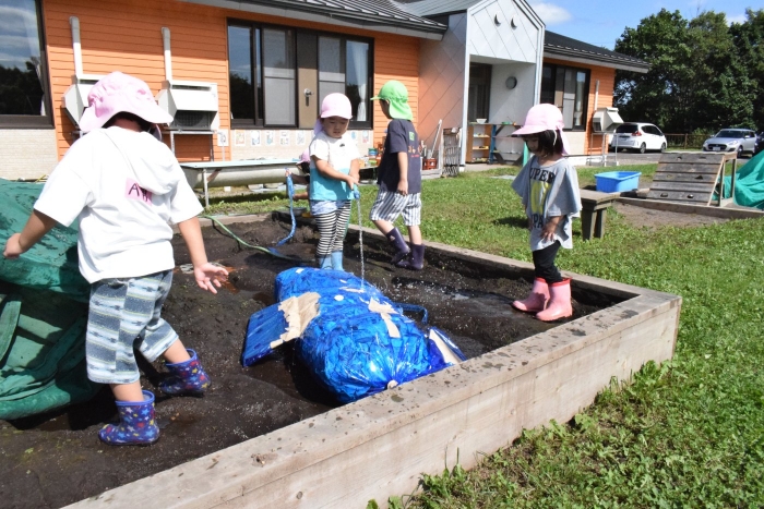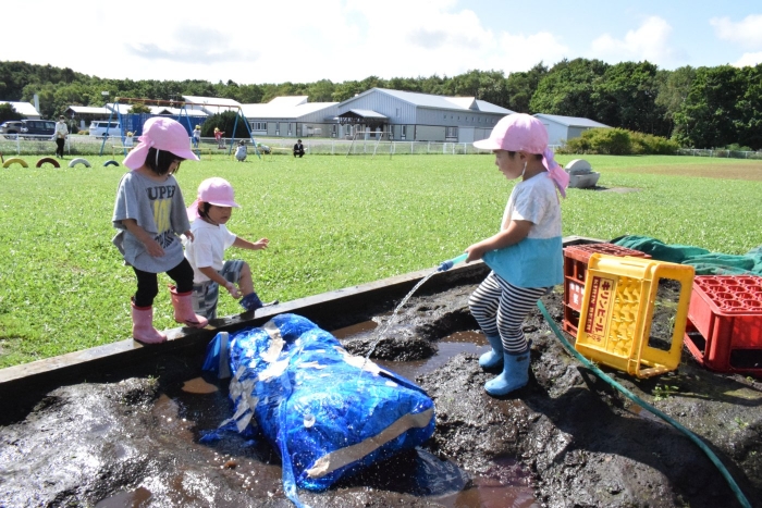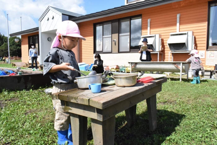 今日は根室管内公立幼稚園の教育研究大会が野付幼稚園で開催されました。管内の幼稚園から9名の先生が保育を見に来てくださいました。知らない先生たちに見られて子どもたちは少々緊張気味(>_<) でも優しい眼差しに次第に心を開いて近寄って行ったり、お話したり・・・嬉しさも感じていました。野付の子どもたちの人懐っこさや楽しそうに遊んでいる姿を見てみなさん「癒されました~」と言って帰って行きました。